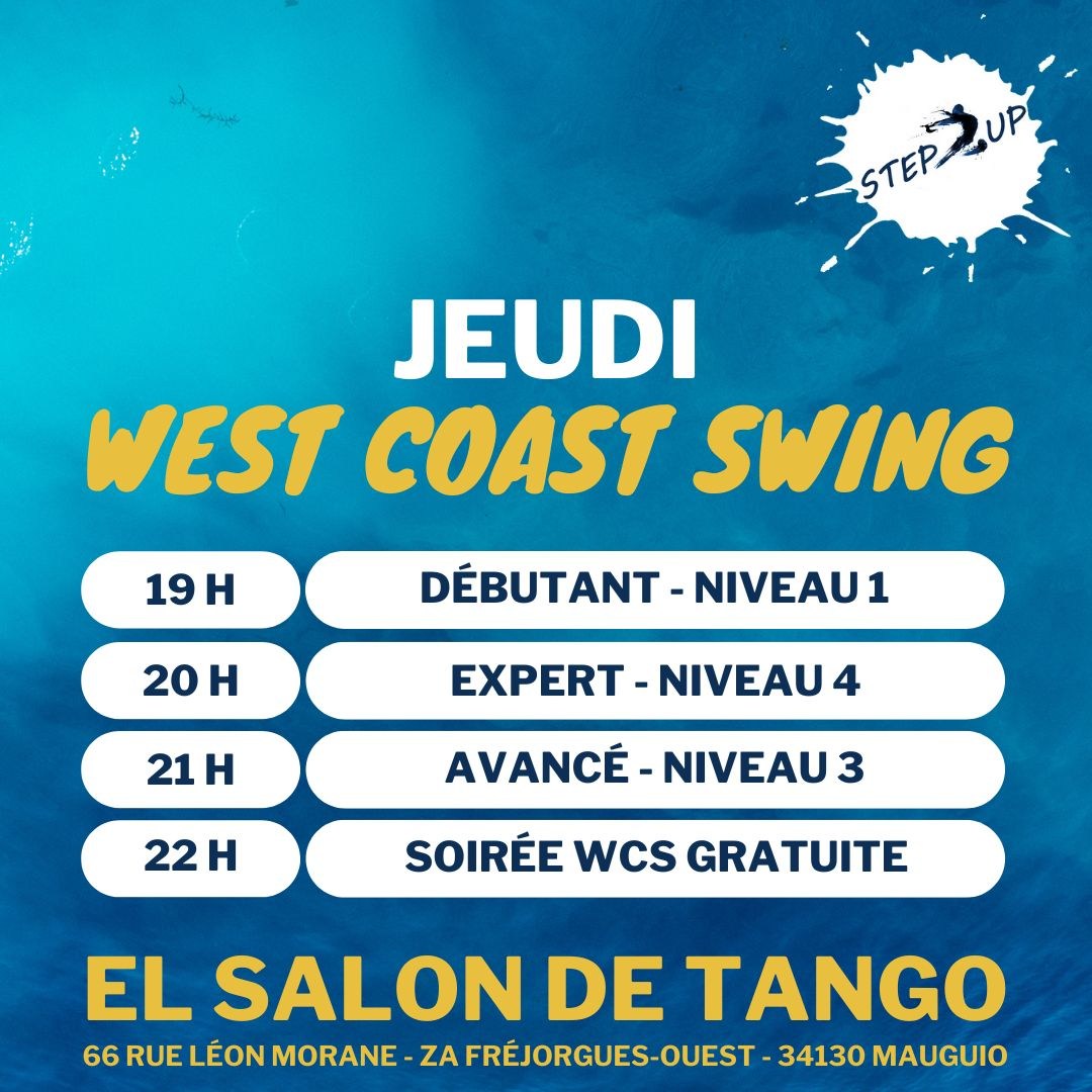 > STEP UP Association : COURS WEST COAST SWING les JEUDIS + SOIRÉES / PORTES OUVERTES COURS D’ESSAI GRATUIT SEMAINE du 15 AU 26 SEPTEMBRE + un samedi/mois mensuelle WCS