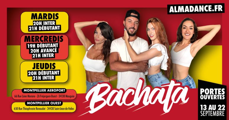 > Les mercredis COURS+SOIRÉE BACHATA avec ALMA DANCE (portes ouvertes 14 et 21 sept) 19h-1h