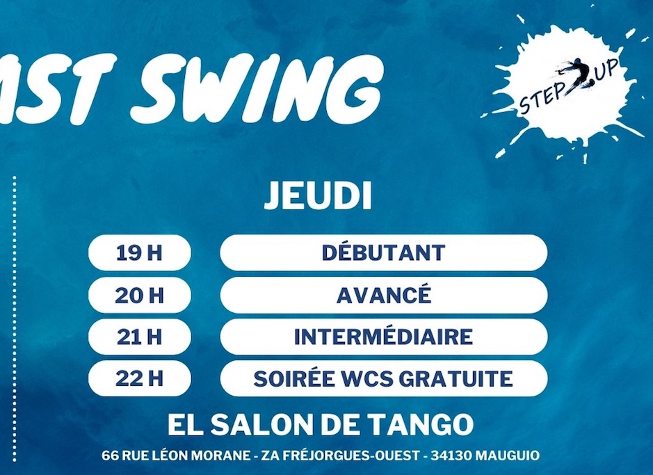 > Les jeudis COURS+SOIRÉE WEST COAST SWING avec STEP UP (portes ouvertes 15 et 22 sept) 19h-1h